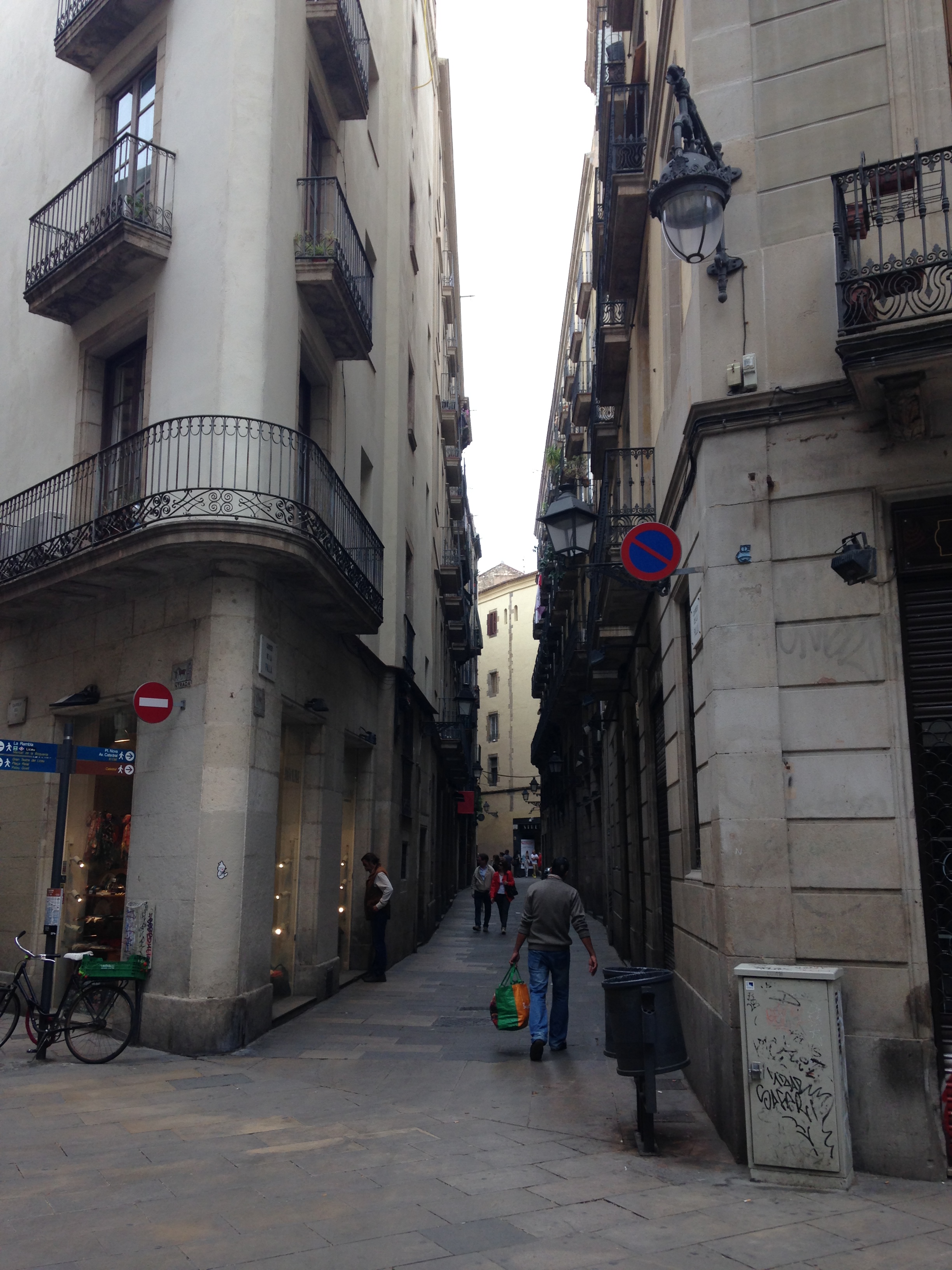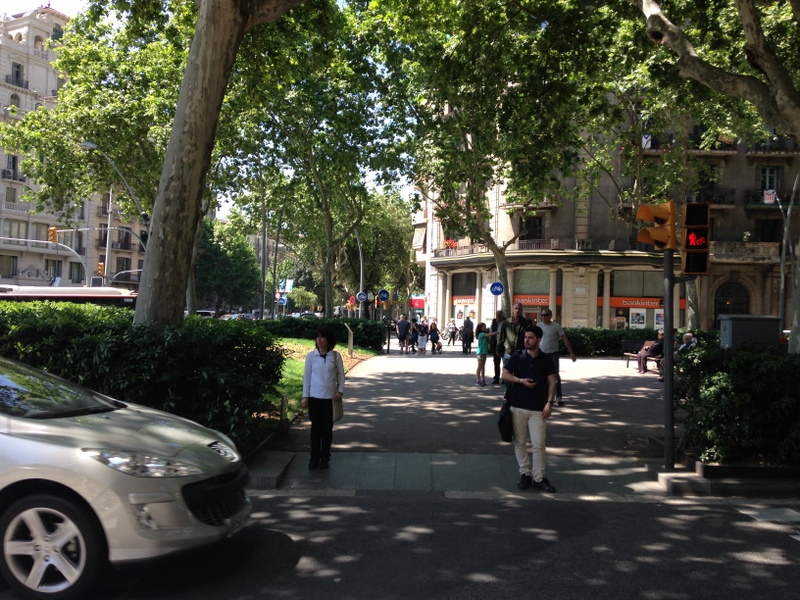 After a few hours of playing there, we decided to look at Stephanie’s Lonely Planet book for a referral for lunch…We picked a nice seafood restaurant and headed out…I will say that Stephanie is far better with a map then I am…and after only a couple of wrong turns and 45 minutes of walking and several stops for me to ask for directions in very butchered Spanish, we found our place…only to be shot down…seems we were in a very exclusive area of Barcelona(La Gracia), one where the average lunch was 30-60 euro…disappointed as we were, I insisted on, at the very least we take a selfie, just to remember the adventure…On the bright side, the area was wonderful…not a lot of people…less smoking…and really sweet shops…We eventually settled on an Italian Restaurant and shared a lovely pizza and salad…and I thought the food was really good…we parted ways so Stephanie could head off to Parc Guell and me back to the Gothic Quarter, with a planned meet for dinner.